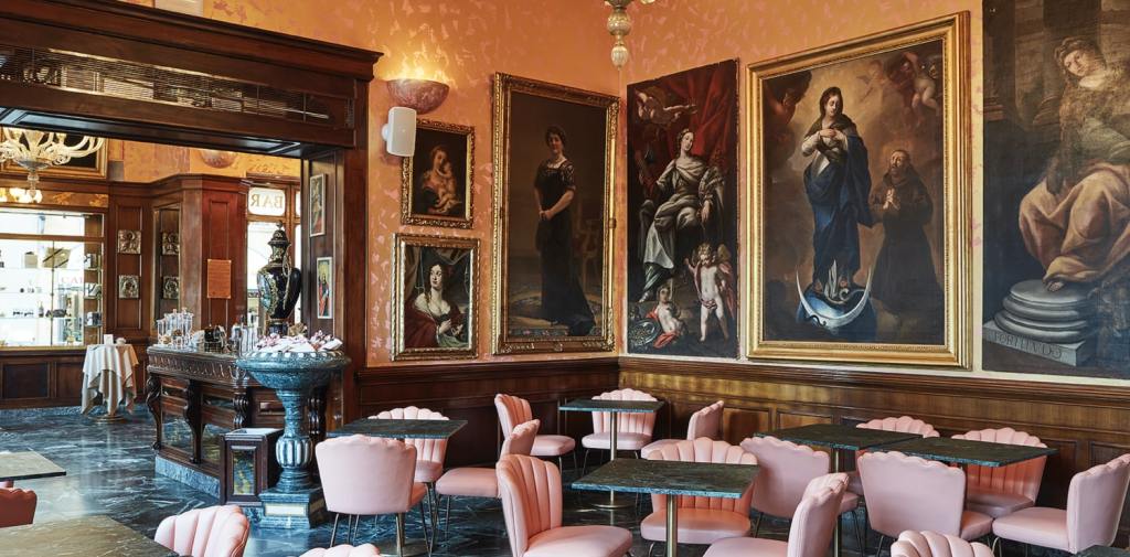 C’est en 1824 que la famille Marchesi ouvre pour la première fois les portes de sa pâtisserie à Milan. A partir de 1900, Angelo Marchesi, son propriétaire, commence à servir du café le matin à ses clients et des cocktails le soir. Aujourd’hui, Marchesi est une pâtisserie et un salon de thé. Le mobilier est d’époque, le style y est Art déco. Sur son site internet, Marchesi 1824 vend de nombreux produits en ligne : panettones, colombes, biscuits, chocolats, vendus dans un écrin délicat aux couleurs douces, faisant penser à l’univers de Wes Anderson.